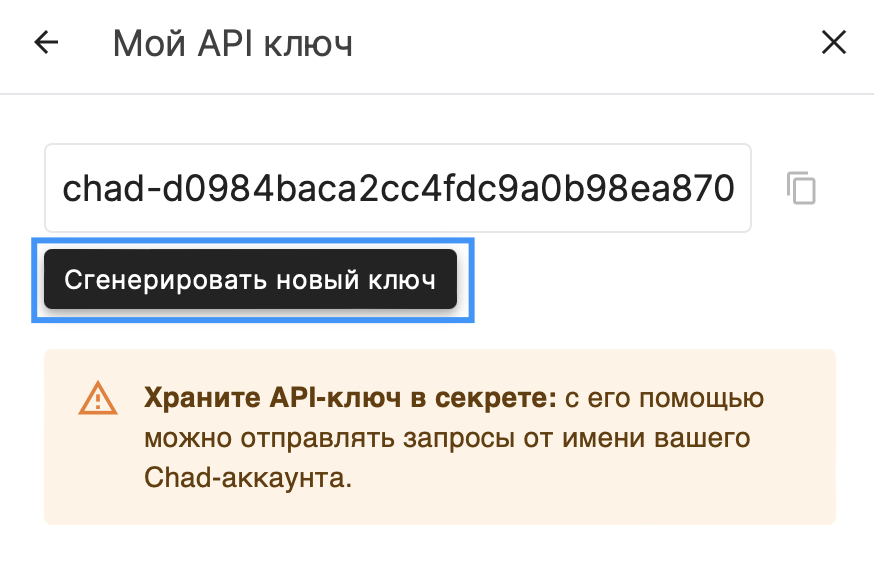 3) Выберите «Мой API ключ» и нажмите кнопку «Сгенерировать новый ключ»