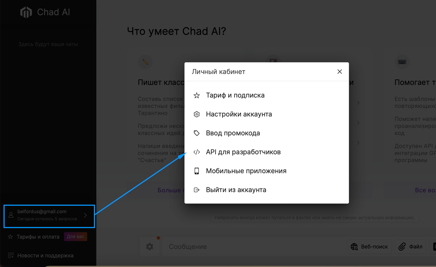 Для получения API-ключа ChatGPT на сайте ChatGPT.ru, следуйте этим шагам: