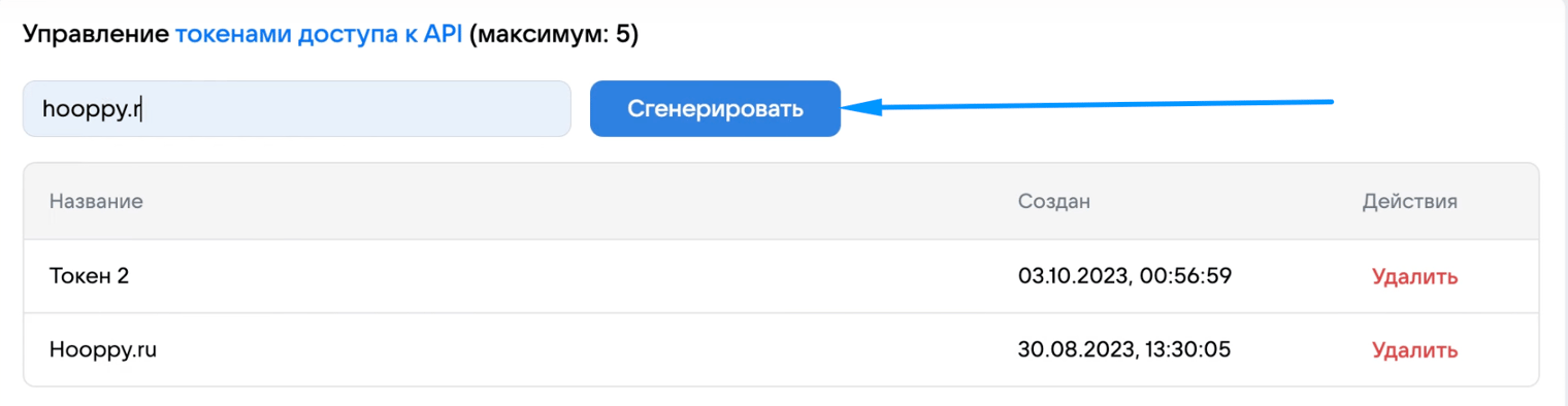 4) Скопируйте и вставьте токен в найстройках ОРД на Hooppy