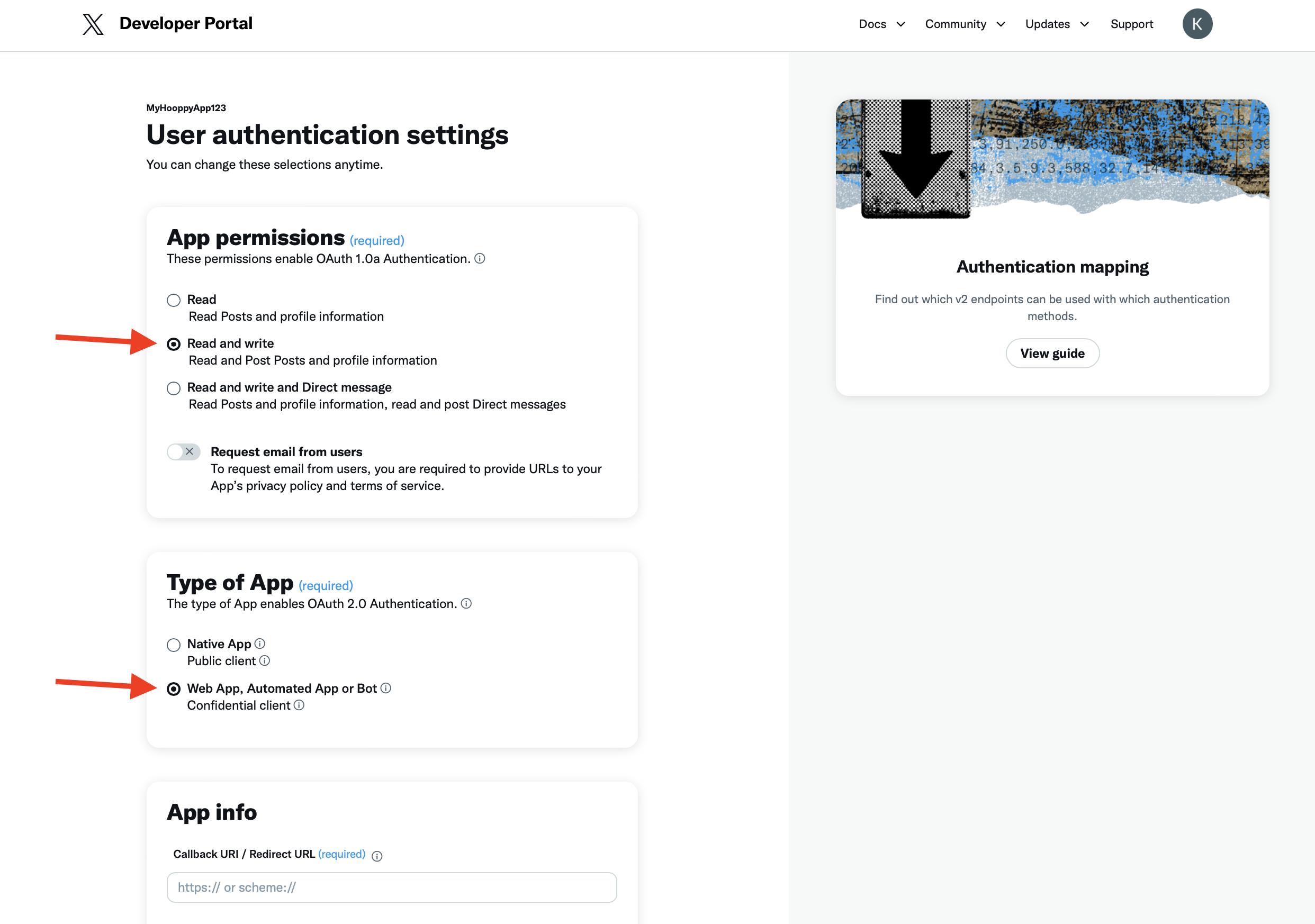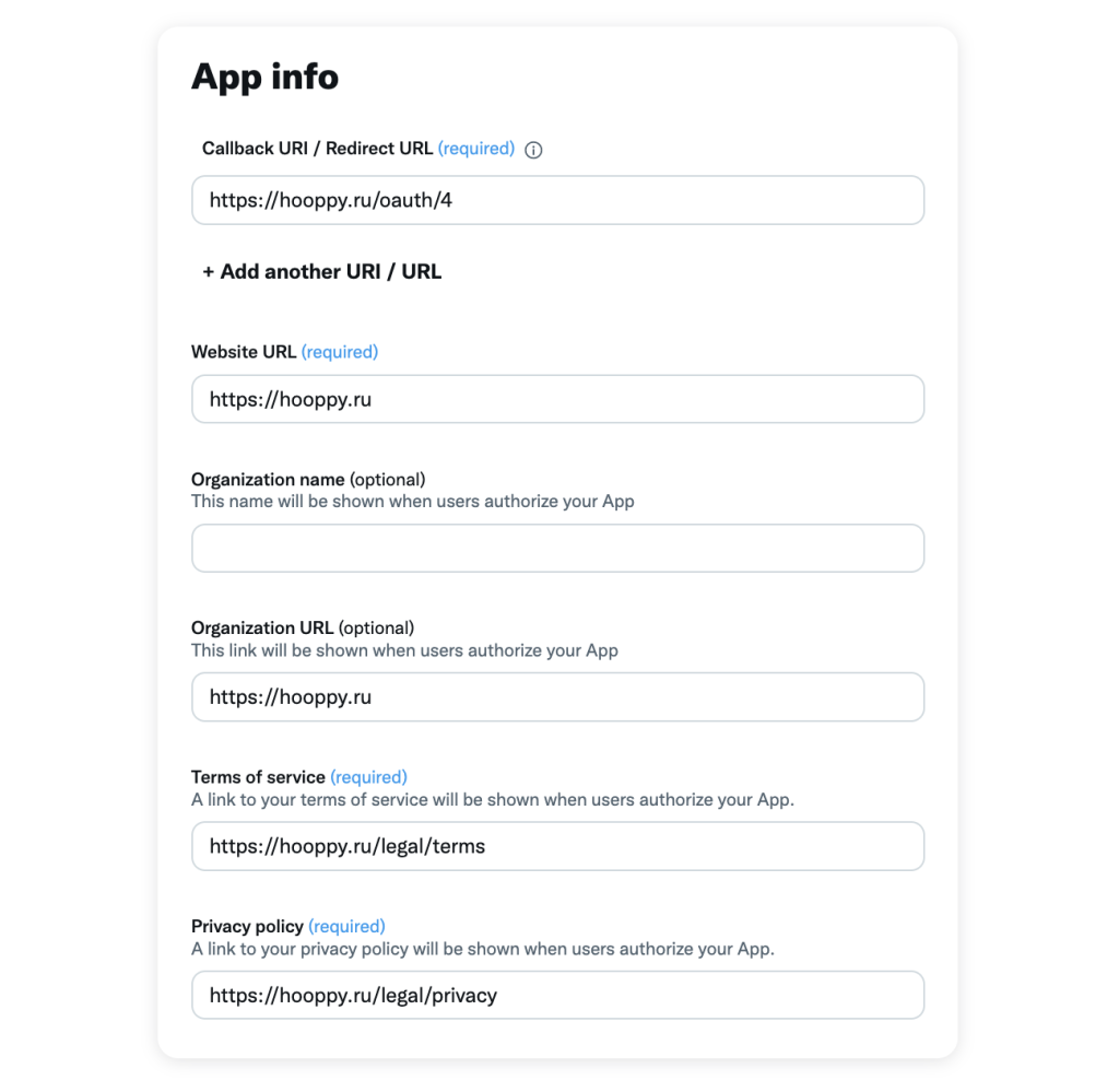 Для публикации в Twitter/X вам нужно создать в нем свое приложение и подключить его к Хуппи.