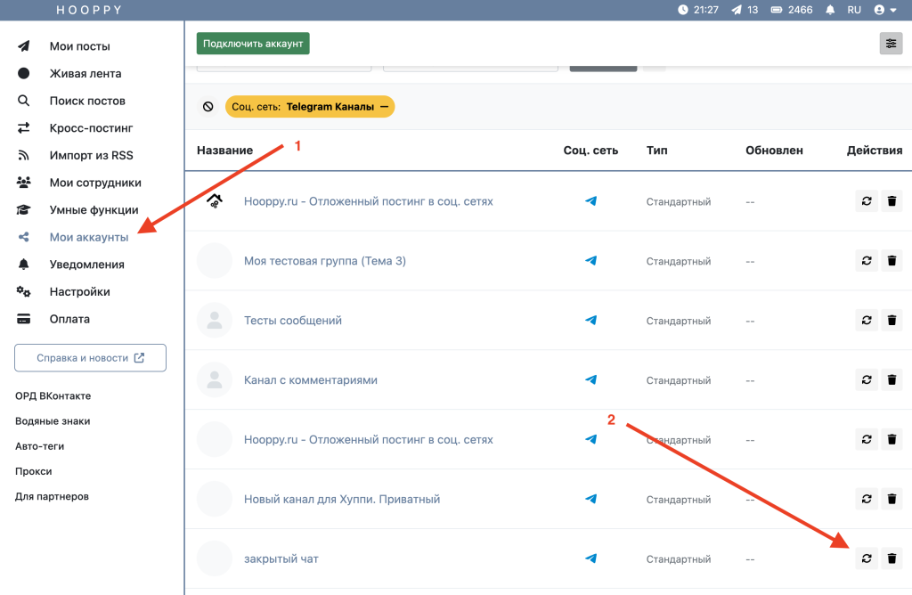 На Хуппи есть возможность публиковать посты в Телеграм не только от имени бота, но и от имени аккаунта. Это дает следующие преимущества: