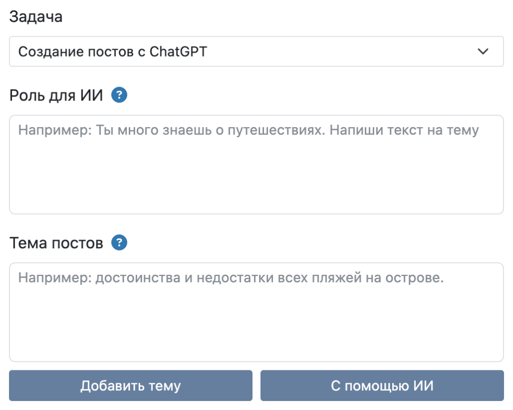 Темы можно задать самостоятельно, либо, опять-же, с помощью ИИ.
